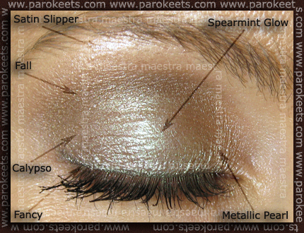 Najsvetlejša senčka je Metallic Pearl, ki ima svetlorjavo osnovo. Pri suhem nanosu se senčka skoraj stopi z barvo kože (opazen je le prevladujoče zlat šimer), medtem ko pri mokrem nanosu pride do izraza bolj bakreno-rjava barva.