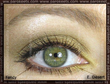 When I looked at my nails and admired the polish, I got the inspiration of doing a matching make-up. I used the following eyeshadows: Everyday Minerals – Pearl Beige concealer, Sweetscents – Egyptian Desert, Myst, Jardin andFancy.