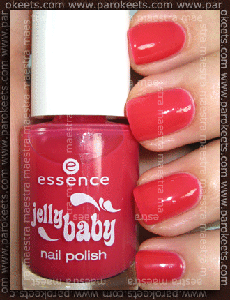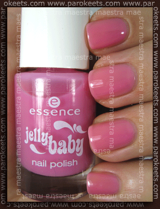 Bubblegum has a very appropriate name. It is really like pink bubble gum. It’s very sheer, but surprisingly it doesn’t bother me at all. It really looks like I have pink jelly on my fingers. In the picture there are three coats.