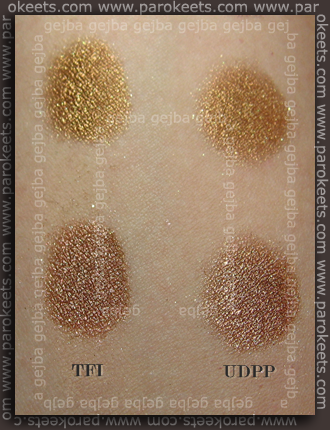 We had a debate on the ARS forum, where some of the participants mentioned that their mineral eyeshadows look duller on TFI than UDPP or CS Eye-Poxy. I decided to compare TFI and UDPP. Eye-Poxy comparison will follow.