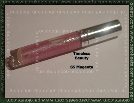 V XXL Shine gloss v odtenku Timeless Beauty – prozoren s srebrnim šimrom – sem dodala malo Sweetscents mineralne senčke v odtenku Magenta. Dobila sem zelo lepo barvo glossa, ki sem ga sama že dolgo iskala :wub: