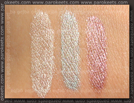 Viva Caribbean was hardest to apply – it’s kind a watery. I needed three layer to archive color you see in the swatches It’s great base for mineral eyeshadows as they stick to it … well if you don’t have oily lids, since it will probably crease on you.