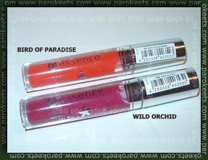 Glossa nista pigmentirana. Sta goste konsistence in dasta ustnicam jelly izgled. Vsebujeta bleščice, ki so malce večje kakor smo jih vajeni pri ostalih Essence glossih, vendar le te niso moteče. Oba sta kar precej obstojna in na ustnicah ne dajeta občutka lepljivosti. :w00t: