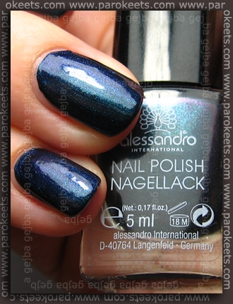 That is a gorgeous color. I don’t think I’ve seen anything like this one. Looks so pretty on you. I love duochromes. Two for the price of one!