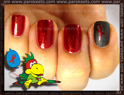 Moja današnja manikura je v stilu 1. decembra – dneva rdeče pentlje. Danes je namreč svetovni dan boja proti AIDS-u.