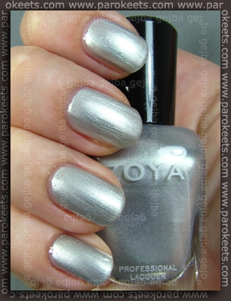 Today I have on one of the polishes I got in swap with Lynn – Zoya Laney (Reverie collection). It looked promising in the bottle – silver base with slight green and purple duochrome.
