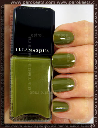 Kljub temu da sem bila prepričana, da bo lak izgledal “jajks” na meni, sem ga vseeno kupila. Nekaj tako posebnega oziroma drugačnega sem pač morala imeti. Ampak sem se presneto motila. Lak na sebi naravnost obožujem!!! :cute: Priznam pa, da sem bila rahlo razočarana nad samo konsistenco laka. Vsi namreč neskončno hvalijo Illamasqua lake in njihovo formulo, mene Hectic v tem pogledu ni prepričal. Konsistenca je precej “tanka”. Ni sicer vodena. Ne vem, kako naj se izrazim. Ni zelo pigmentiran, zato rabi dva do tri plasti za popolno prekrivnost. Po svoje me spominja na konsistenco laka Orly – Country Club Khaki. Nanos je sicer neproblematičen, le več sem pričakovala od te znamke in laka, ki stane £13. :shock: