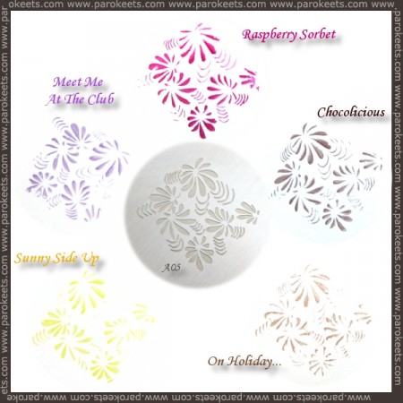 Meet Me At The Club, Raspberry Sorbet and Chocolicious are great for stamping, while On Holiday… and Sunny Side Up leave paler impressions.