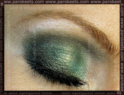 Black-green-gold make up… Hightlighting is done with the lightest shades in the Sleek i-Divine Bad Girl palette. Do you see how green the Aqua Gold looks in the photos below?