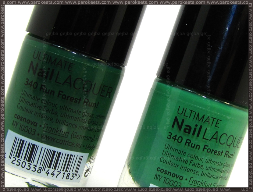 I visited Austria couple of months later and saw this pretty dark green polish on Catrice stand. Shade – Run Forest Run. And it hit me – Catrice followed Essence trend of changing the content but keeping the name. :ermm: