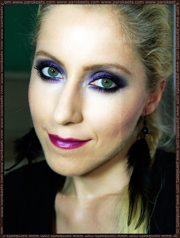 Mislim, da bo moje navdušenje nad tem MUjem dovolj očitno, če ti povem, da mi je ljubši od tistega tvojega zelenega, ki si ga naredila z Illamasquo kot inspiracijo in zaradi katerega sem se zaljubila v Parokeets. Čudovito je. Brez besed sem. Za okvirt. Tak look je moj najljubši. *Daleč* najljubši. Smokey eyes je stil ki ga “furam” ko grem ven, vedno. V vijoličnem mi je še toliko lepši. Moram ga preizkusiti! Edino dovolj temna vijolična mi manjka. :/ Mimogrede. Zelo lepo je prebrati tvojo opazko okoli pravila “oči ali ustnice” in da pravil v mu svetu pravzaprav ni. Včasih to malce pogrešam. In se že tako prepričam, da se jih moram držati, da si ne upam dati še udarne šminke na ustnice, če imam na sebi črn smokey eyes, četudi sem pri volji za kombinacijo obojega. Goth izgled je moj holy grail, zanj pa rabiš ta pogum, da vržeš pravila v koš. :yes: Dobro je prebrati tudi na tako uveljavljenem MU blogu, da pravil pri MUju pravzaprav ni.