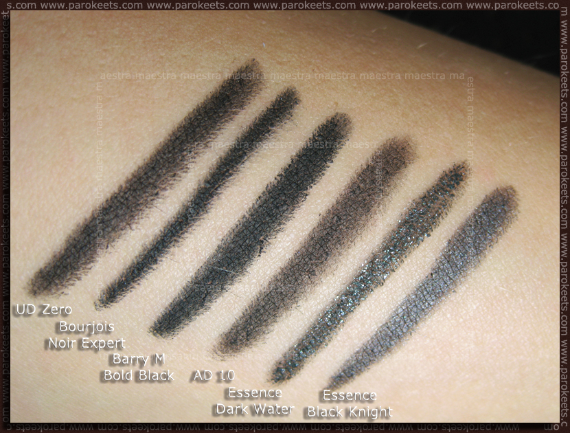 Artdeco – Soft Kajal 10 is the least black from the bunch. It’s similar to UD Zero if you ask me. A very good eye pencil and it was one of my favourite black for a long time, but now the Bourjois has taken it’s place at the top.