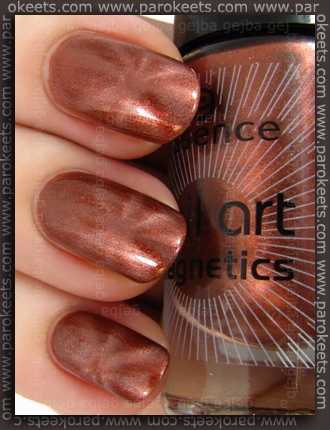 I have good and bad news. Let’s start with the bad – magnet is still not what it’s suppose to be. Just not enough punch behind it. Good news? Polishes are a dream – lovely colors and lots of iron particles. :thumb: So combination actually gives a result … best if you literally press the magnet into the wet polish, but let’s not go there. :silly: