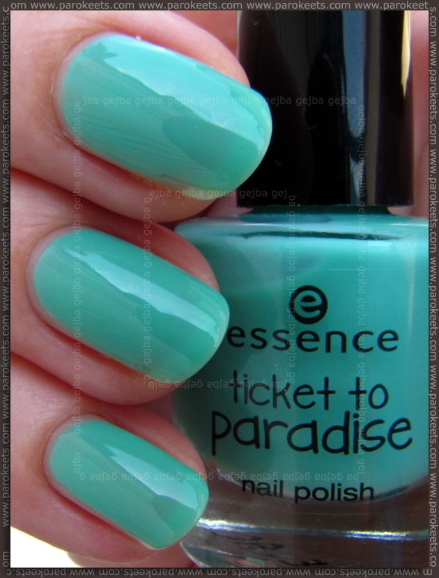 Essence Dive With Me To The Island is one really gorgeous nail polish in mint-ish shade. It’s absolutely no surprise that color would appeal to me, but I was unsure about formula. But boy did I love it. It’s not full coverage, but not sheer either. I guess jelly would be the closest finish match, but not 100% accurate either. 2 coats look just about perfect to me – formula and color wise. BTW in this post we are playing game called – we’re all pretending not to notice Gejba’s lousy application. :silly:
