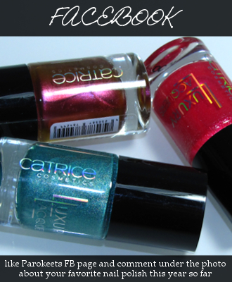 I would normally swatch interesting nail polishes separately, but that would take almost a week to accomplish and I wanted to give little something back to our lovely readers for todays International Women’s Day. As we reached 2.500 Facebook and over 800 Tweeter followers it just seemed as a right time to thank each and every single one of you ladies and wish you fantastic day. :rose: Click on the FB photo will take you to Facebook giveaway and click on Twitter photo to the tweet. Rules are same old.