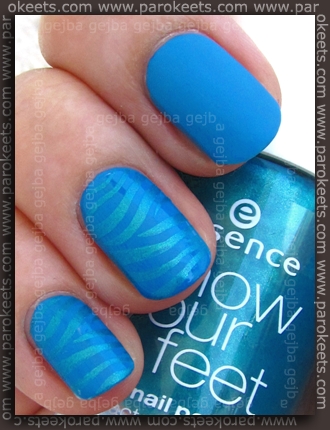 I did a konadicure with Essence Carribean Sea – turquoise polish in my eyes. And I applied Essie Matte About You on my middle finger – and disliked the finish at once. It’s just too chalky for me.