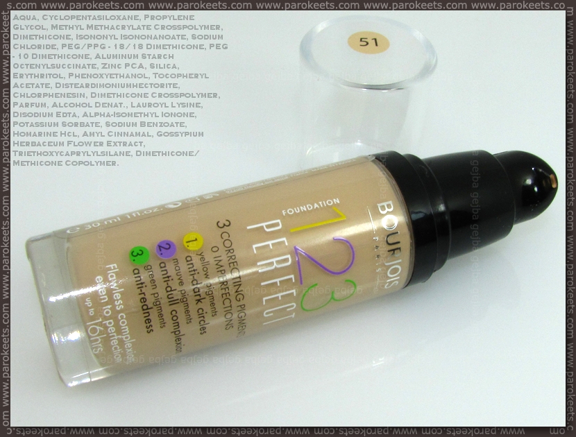 I compared Bourjois 123 Perfect foundation Light Vanilla with two other liquid foundations in 51 shade … Healthy Mix and Healthy Mix Serum. 123 is the darkest of the bunch. My arm does not have the same undertone as my face, so none of the shades will look as a perfect match. The closest to my face undertone is Serum … but I like it’s formula the least and 123 the best.