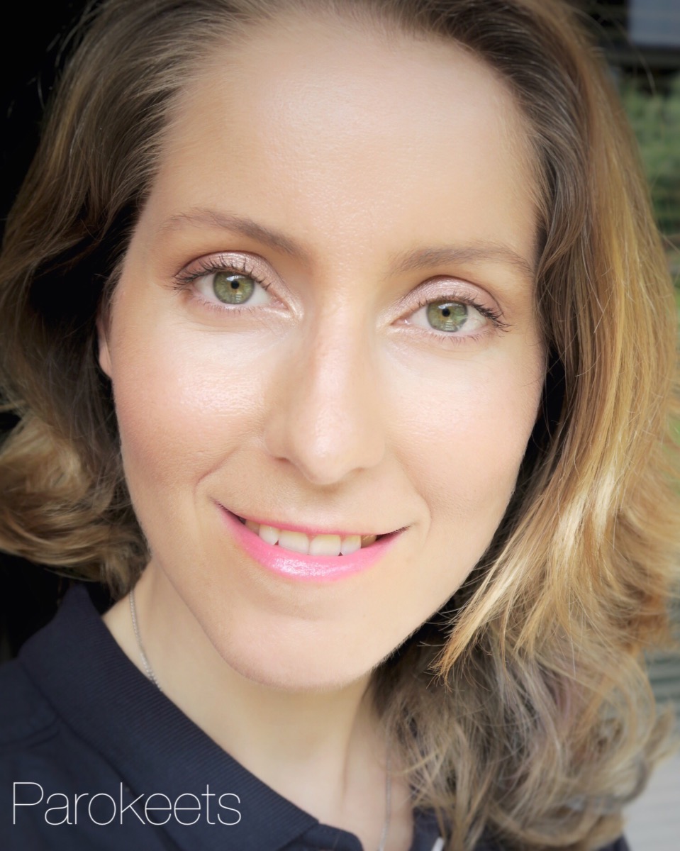Dobra vsakodnevna podlaga, ki lepo izenači polt in je do srednje prekrivna, hkrati pa je na koži skoraj neopazna. Finiš je svež in čisto nič pudrast. Najbolje se finiš vidi na zgornjih fotografijah/swatchih šmink. Ne oprime se obraznih dlačic. Mojih širokih por ne zamaskira, da bi izgledale manjše. Prav tako jih ne poudari. Podlaga se na meni nikoli popolnoma ne posuši in ne “zacementira” na obraz. Tako se podlaga dokaj enostavno premakne na obrazu in posledično je tudi veliko transfera. Zaključni puder je tako skoraj nujen. Primerna je za normalno do suho kožo. Embalaža je na pumpico.