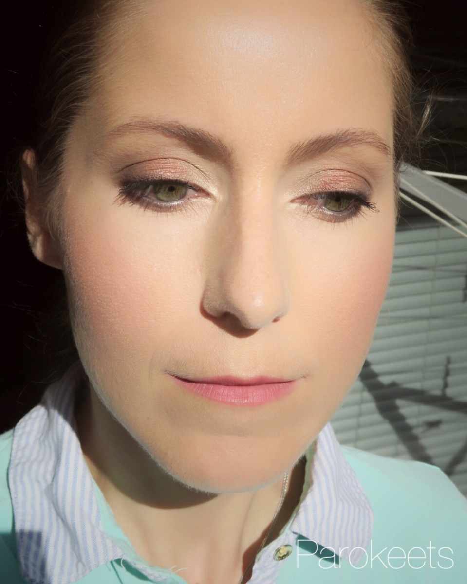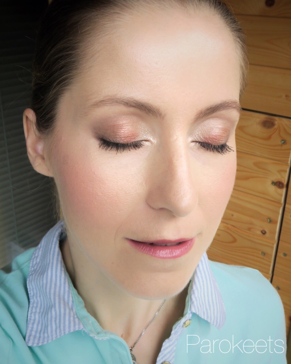 Za konec še make up look, pri katerem sem uporabila zgoraj opisane izdelke. Na obrazu je Match Perfection podlaga (in čez zaključni puder). Na licih Live Pink rdečilo. Na očeh petorček senčil v odtenku Brixton Brown (najsvetlejše senčilo v notranjih kotičkih, v sredini veke rdeče senčilo, v gubi mat sivo rjavo senčilo in na zunanjih delih veke najtemnejša odtenka iz palete). Navdih za look sem pobrala kar iz skice na zadnji strani paletke. Na ustnicah pa The Only 1 šminka v odtenku Naughty Nude. Na zadnji fotografiji je šminka zblotana s papirjem in fotografirana dobro uro po nanosu.